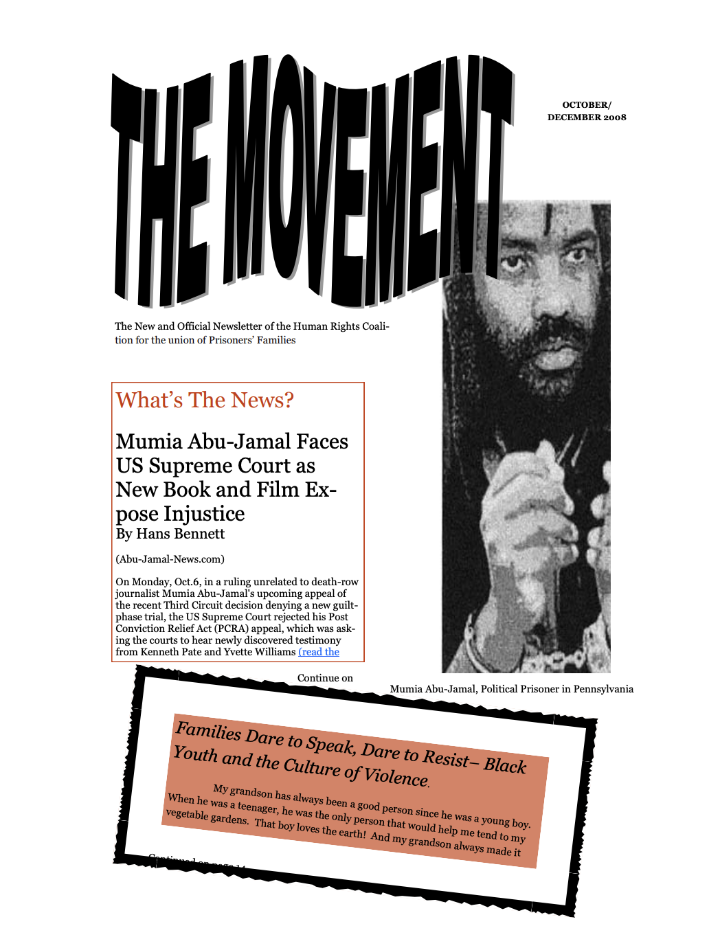 Thousands of people inside prisons and their supporters on the outside subscribe to The Movement. Subscriptions are free to everyone, but we ask that you donate to HRC to fund our efforts if you can.